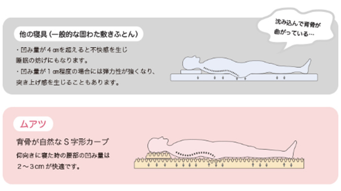 ムアツふとんと整圧®マットレスの違い・ムアツふとんよりも「体圧分散」により特化している